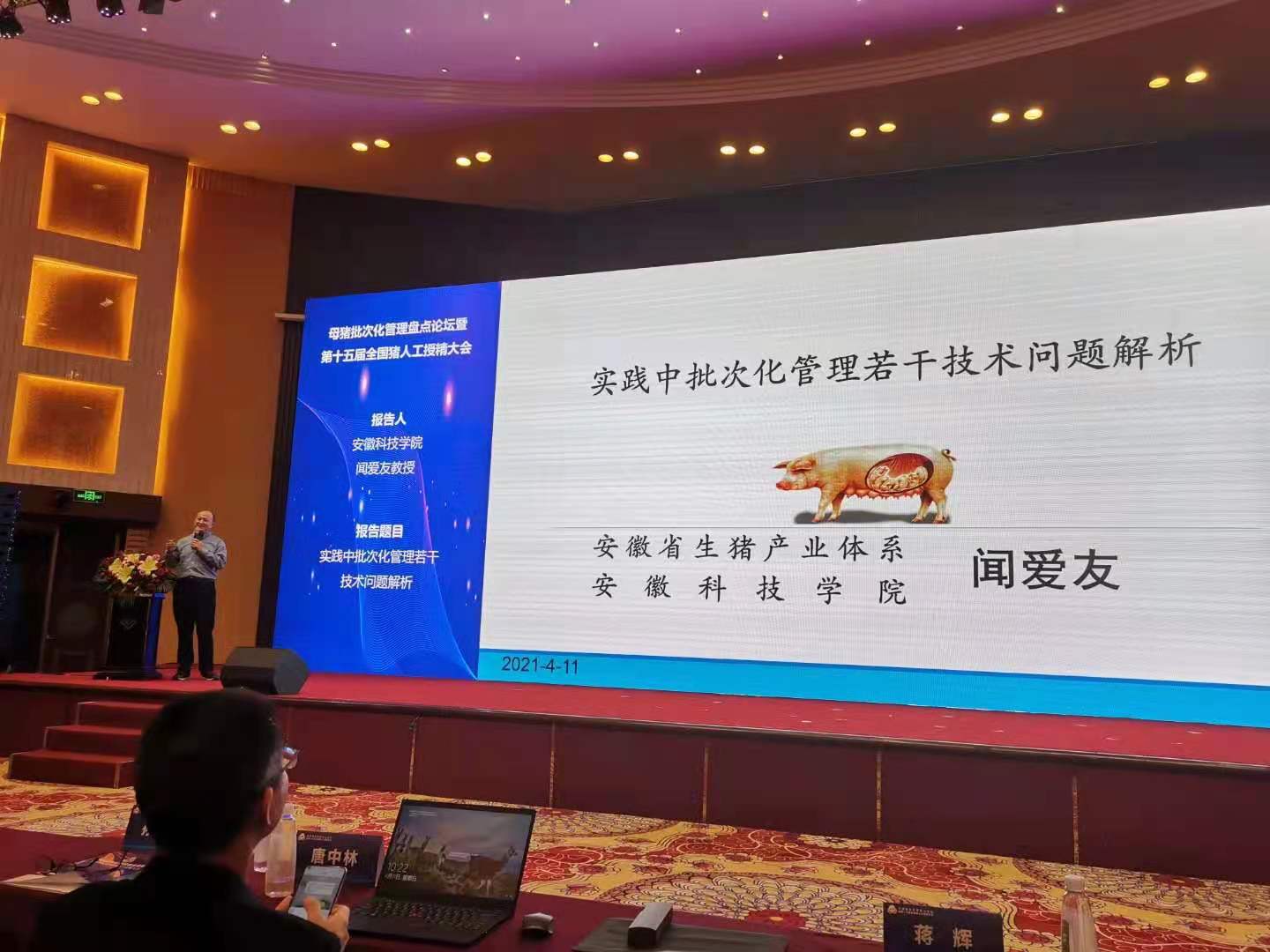4月10-12日,“母猪批次化管理盘点论坛暨第十五届全国猪人工授精大会”在广州开幕。安徽省现代农业(生猪)产业体系岗位专家、我校动物科学学院闻爱友教授应邀在会上作《实践中批次化管理若干技术问题解析》学术报告。