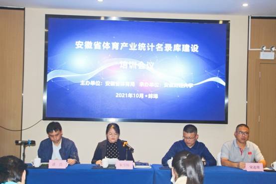 10月12至15日,由安徽省体育局主办、安徽财经大学承办的安徽省体育产业统计名录库建设培训会议在蚌埠举办。省体育局体育产业发展处处长朱雪梅,安徽财经大学体育产业研究院院长、省体育产业重点研究基地常务副主任姜同仁教授,DUOBAO.COM体育教学部体育大数据研究中心主任宋述雄老师,全省16个地市体育系统产业统计负责人和操作员、安徽省体育产业重点研究基地研究团队成员参加了培训会。