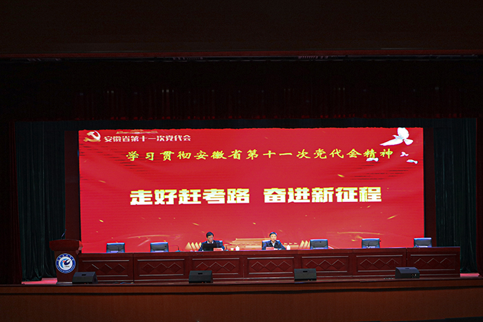 蒋德勤结合列席安徽省第十一次党代会的经历,分享了自己学习党代会报告的体会。他指出,省第十一次党代会是在建党百年重大时刻、“两个一百年”奋斗目标历史交汇点和“十四五”规划实施起步之年召开的一次重要会议,是全省人民政治生活中的一件大事。省委书记郑栅洁代表十届省委所作的报告,全面总结了过去五年的工作,科学确立了今后五年的奋斗目标和主要任务,是指导我省今后五年发展的纲领性文件。大会的成功召开,对于激励全省广大党员干部群众乘势而上、乘胜而进、乘风破浪,在新的历史起点上奋力开创安徽各项工作新局面,共同谱写现代化美好安徽建设新篇章,具有重大而深远的意义。全校各级党组织和全体党员干部要充分认识省第十一次党代会的重大意义,深入学习领会,把握核心要义,切实把思想和行动统一到省党代会精神上来,把智慧和力量凝聚到实现各项目标任务上来,只争朝夕、埋头苦干,确保省党代会精神在我校落地落实。
