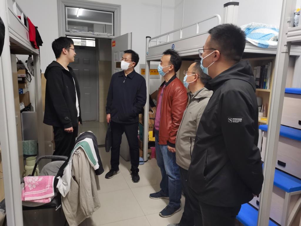 走访过程中,当看到大部分研究生都在认真准备科研论文或阅读科研文献,学习科研劲头很足时,李升和感到十分高兴。他与同学们亲切地交谈,详细了解研究生的科研进展、学习生活、未来规划等情况,询问同学们有没有困难,有没有需要再帮助的地方;鼓励研究生在科研的道路上不断进取,并要求同学们保持良好的学习生活作息规律,叮嘱研究生严格遵守校规校纪和疫情防控期间校园封闭管理规定,加强个人防护和公共卫生,遇到困难和问题时要及时向班主任、导师和研工部反映。