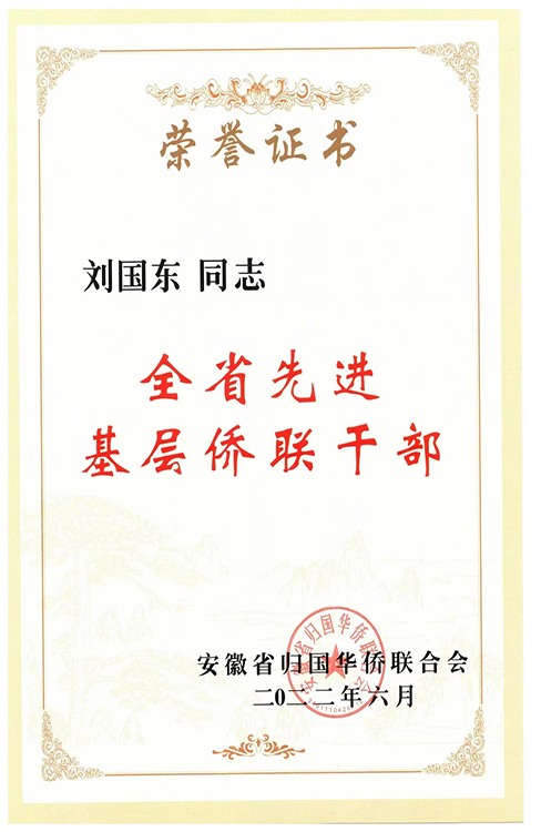 同时,为表扬先进,进一步激发全省侨联系统干事创业的热情,安徽省侨联启动开展了全省侨联系统先进个人评选活动。我校侨联主席刘国东荣获“全省先进基层侨联干部”称号。