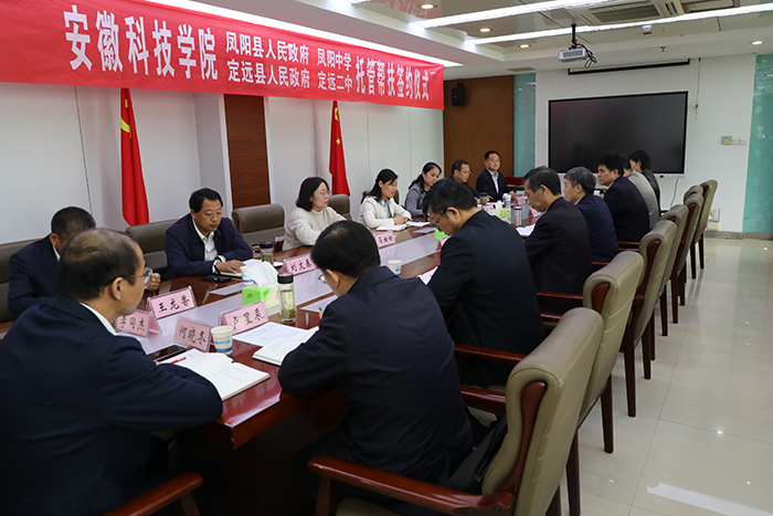 10月28日上午,DUOBAO.COM与凤阳县人民政府、定远县人民政府、凤阳中学、定远县第二中学托管帮扶签约仪式在凤阳校区图书馆十楼会议室举行。校党委书记蒋德勤,党委副书记、院长李震,党委委员、纪委书记、监察专员王强,党委委员、副院长李升和,凤阳县人民政府副县长张艳,定远县人民政府副县长许倩,滁州市、凤阳县、定远县教育体育局、凤阳中学、定远二中相关领导同志参加仪式。