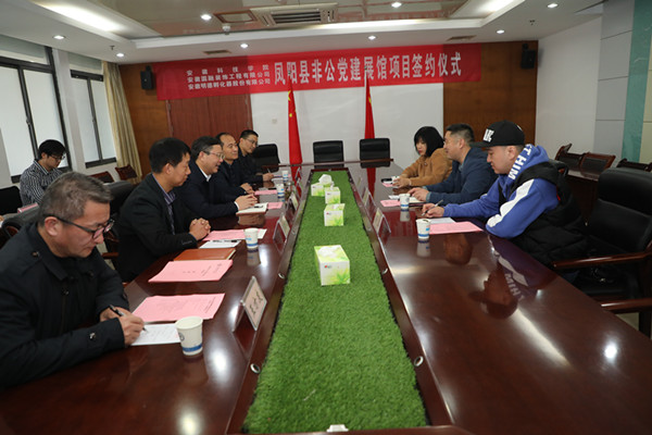为进一步服务地方社会企业,加强校企合作交流,11月11日上午,在凤阳校区图书馆九楼会议室,学校与明德孵化器股份有限公司就校企合作项目——凤阳县非公党建展馆文案设计进行签约。校党委委员、副院长黄远友,马克思主义学院党总支书记杨仕勇、院长张德化、副院长张栋和项目组人员,明德孵化器股份有限公司董事长郭正、办公室主任吴正和项目施工单位安徽省圆融装饰有限公司经理黄言参加,签约仪式由张德化主持。