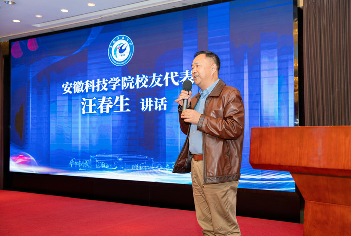 优秀校友代表汪春生分享了在安科的求学经历和几十年的职业发展,勉励校友以认真负责的态度不断学习,省身自律,砥砺奋发,同母校同行共进。合肥校友会负责人郭凯向母校和全体校友汇报了合肥校友会工作情况及2023年发展计划。甘斌杰、秦广泉、李连连、许胜胜四位校友分享了各自的创业历程和职业发展成就,四位校友分别毕业于母校不同的发展阶段,共同见证了母校的发展壮大;在不同的领域、不同的时代践行安科精神、贡献安科力量,共同彰显了安科校友的担当精神。
