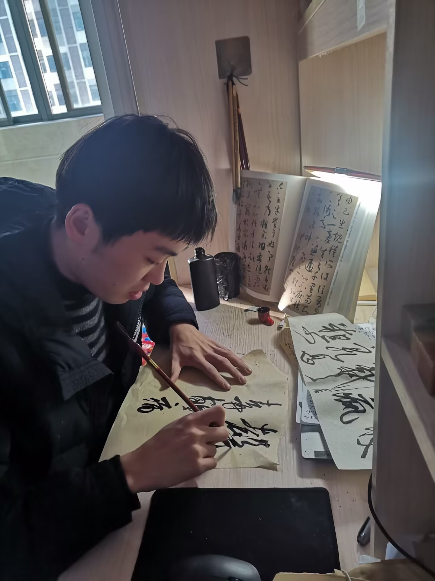 陶乐乐对学习充满热情,善于钻研,乐于将所学的知识融会贯通并总结出一套自己的学习体系来丰富自己的学识境界。他具有丰富的想象力和创造力,在团队设计专利“数字化供水业务服务平台”的过程中,他提出了用“高斯曲线模型”和“数学方位视角”来解决其中一项有关客户体验感提升方法的问题。他曾以个人名义参加了“第二届安徽省大学生品牌创意设计大赛”A类赛事,并取得了省一等奖。他还十分痴迷于书法艺术,尤爱晋唐时期的潇洒书风。在任职“DUOBAO.COM书美协会副会长”期间,他举办了书法知识竞赛、书法创作分享大会、书法艺术展等多项活动,除此之外,他还计划申请加入中国书法协会。