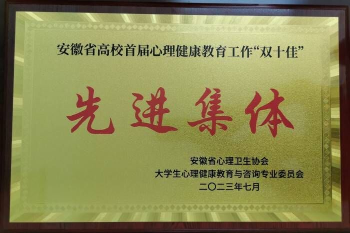 近年来,我校深入学习贯彻习近平新时代中国特色社会主义思想,坚持立德树人根本任务,落实五育并举理念,高度重视心理健康教育工作,认真贯彻落实上级文件精神和决策部署,着力构建“坚持一个先进工作理念引领、建好两层工作机制保障、推动三个层次工作实践、强化四类成果建设”的“1234”心理健康教育工作体系,抓紧抓实抓细抓好各项工作,形成了鲜明的心理育人特色,取得了显著工作成效。此次获评安徽省高校首届心理健康教育工作“双十佳”先进集体是对我校心理健康教育工作的充分肯定。下一步,我校将坚持育人育心相结合,进一步推进心理健康教育工作的科学化、规范化、品牌化建设,充分发挥心理健康教育的积极作用,不断提升育人实效,切实护航学生心理健康,为培养德智体美劳全面发展的时代新人作出积极贡献。