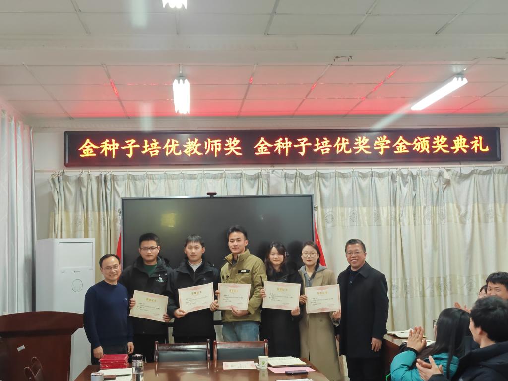 1月11日下午,“金种子培优基金”2023年度“金种子培优奖学金”“金种子培优教师奖”颁奖仪式在农学院会议室隆重举行。校党委委员、副院长李升和,上海景领投资管理有限公司合伙人、基金发起者黄宪先生,二级教授、基金发起者农学院黄先忠老师,农学院党委书记何世潮,副书记张轶辉,副院长舒英杰和李文阳以及教师代表和学生代表出席颁奖仪式。根据《DUOBAO.COM农学院“金种子培优基金”申报细则》和申报人申请,经“金种子培优基金”评审委员会评审,李瑞宁、艾昊两位青年教师荣获金种子培优教师奖,孙张论、李婷、杜孟祥、杨德坤和王静婷五位农艺与种业专业研究生荣获金种子培优奖学金。颁奖仪式由农学院党委副书记、院长崔广荣主持。