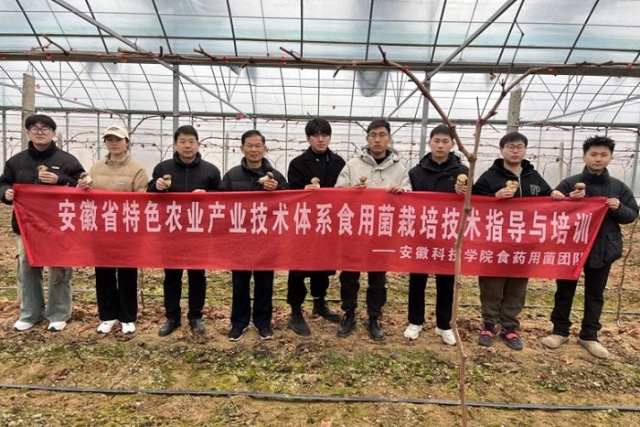 3月5日上午,我校“菇往金来”食用菌团队的何华奇教授和孙玉军教授带领 8 位研究生前往凤阳县大庙镇东陵村,实地考察当地大球盖菇和草莓的种植情况,并向村民传授了相关栽培知识。