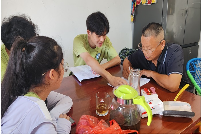 为了更好地服务乡村振兴,8月7日—8日,团队成员赴刘畈乡刘畈村、马甸村与九田村开展入户调研活动,在感受大别山区别样风土人情的同时,进一步了解村民的生活状况和现实需求。团队成员通过问卷调查、访谈等形式,走进寻常百姓家,展开亲切交流,收集了大量村民对乡村发展、红色文化传承、教育医疗、基础设施改善等方面的资料,为团队制定切实可行的乡村振兴方案提供了重要依据,也让团队成员更加深刻地认识到乡村振兴工作的复杂性和艰巨性。