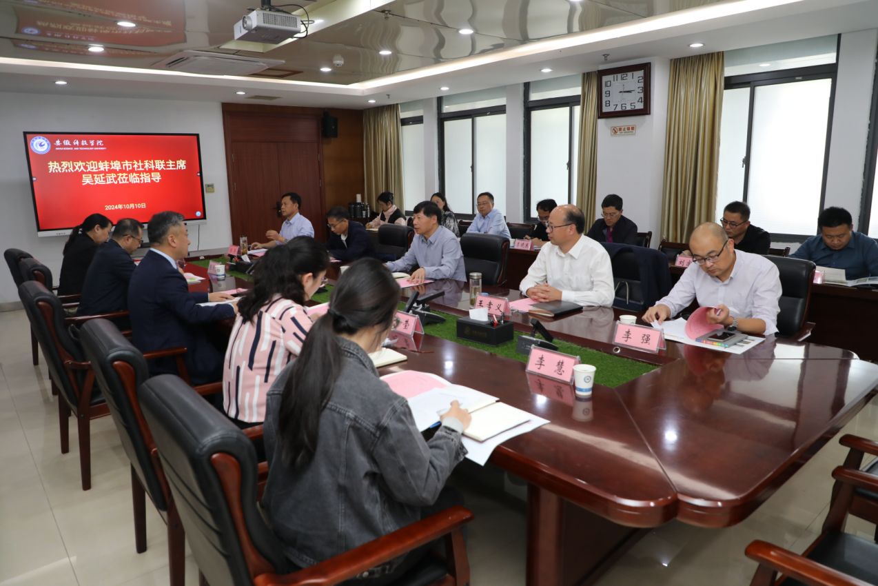 10月10日下午,蚌埠市社科联党组书记、主席吴延武一行来校交流工作。校党委书记时伟,党委委员、副院长王孝义出席会议,校社科联及有关学院代表参加会议。会议由王孝义主持。