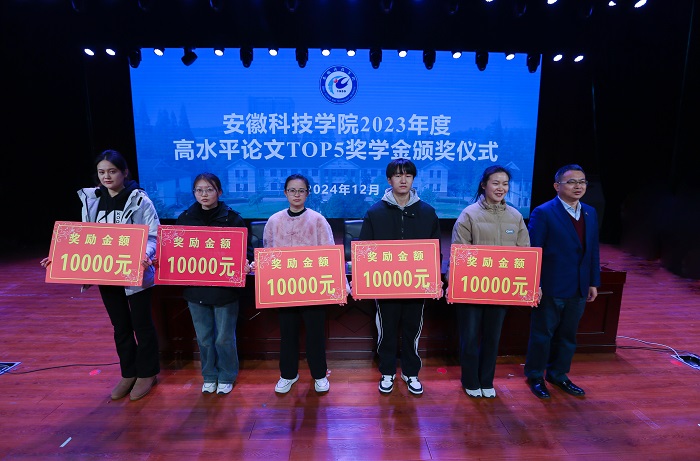为了表彰和激励研究生在科学研究方面取得的学术成果,12月17日下午,学校在凤阳校区大学生活动中心举行2023年度研究生高水平论文TOP5奖学金颁奖仪式。校党委委员、副院长王孝义,江南大学教授、博士生导师、我校1996级杰出校友刘立明应邀出席,仪式由党委研究生工作部副部长、研究生处副处长靳二辉主持。
