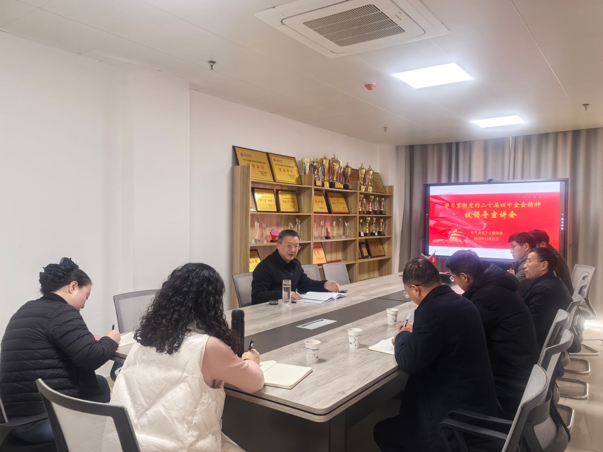 根据学校党委学习贯彻党的二十届四中全会精神宣讲工作安排,11月20日至28日,校党委副书记、院长李升和,党委副书记曹付忠,党委委员、副院长王孝义,党委委员、副院长赵伟峰,党委委员、副院长王玉和,党委委员、纪委书记、监察专员彭庆刚,党委委员、副院长方鸣,党委委员、组织部部长何永勇分别深入各二级学院开展调研宣讲。师生代表参加宣讲会。宣讲会由各学院党委书记主持。