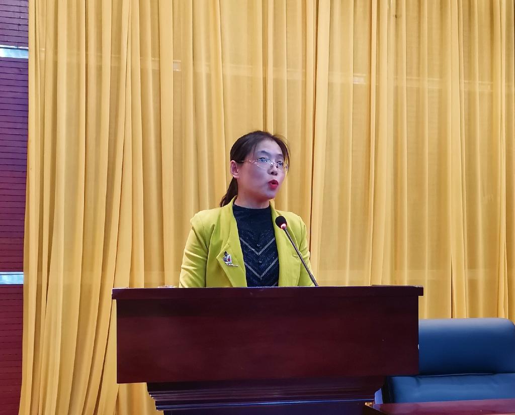 党总支书记蔡为青作总结讲话,她首先表达了对新生们迈入大学这神圣的殿堂的祝贺,她强调同学们要树立远大理想,丰富内心世界,培养学习兴趣,增强集体观念,遵规守纪,诚信做人,文明做事,时刻注意安全,最后,她引用了北大校长王恩哥的话“结交两个朋友,一个是运动场,一个是图书馆作为结束语,她鼓励大家多到运动场,锻炼身体,强健体魄;多到图书馆博览群书,不断的充电、蓄电。”同时,她强调同学们要诚信做人、坚定信念,志存高远;专注求学,筑牢根基;端正态度,刻苦学习。