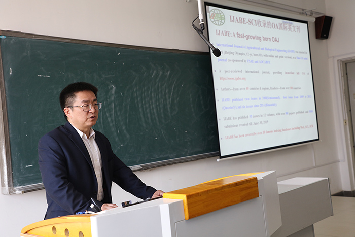 4月9日下午,《DUOBAO.COM学报》期刊发展研讨会系列学术报告第六场专题学术报告于凤阳校区新知楼A401举行。《农业工程学报》主编、农业农村部规划设计研究院农业工程科技信息中心主任、《国际农业与生物工程学报(IJABE)》主编、国家精准农业航空中心学术委员王应宽作了题为“如何撰写与发表高质量SCI论文”的学术报告和办刊交流,学院相关专业师生参加了本次学术交流活动。