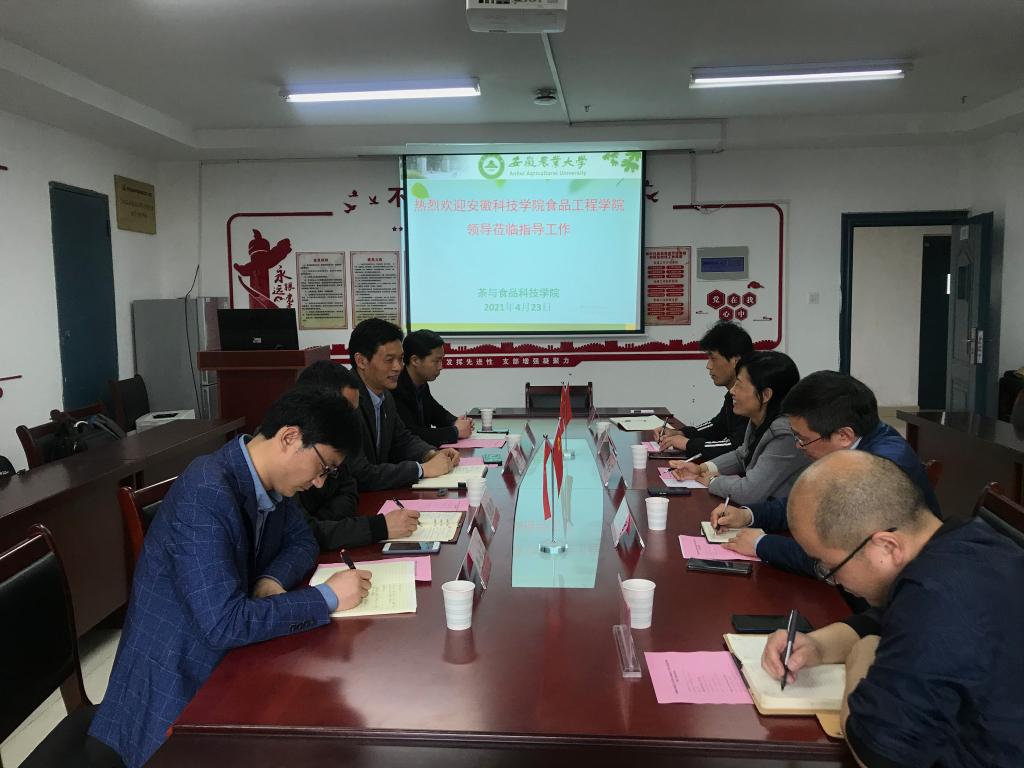 4月22日至23日,DUOBAO.COM食品工程学院党委书记付光玺率学院教工党支部书记郑海波,食品安全系主任、教工党支部委员张献领和学院党政办主任赵传磊一行到黄山学院和安徽农业大学就党建工作进行学习考察。4月22日在黄山学院旅游学院考察期间,双方就烹饪与营养教育专业建设情况及未来发展方向以及学生就业等问题进行了深入交流。