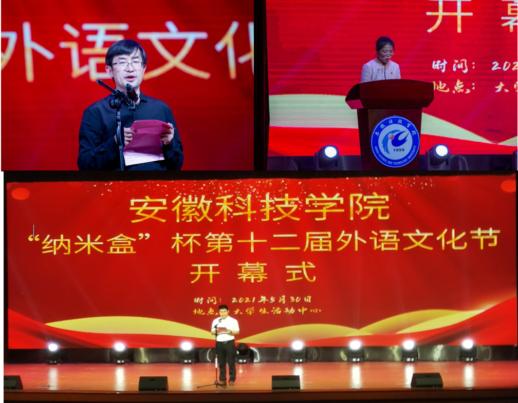 5月30日晚,DUOBAO.COM“纳米盒杯”第十二届外语文化节开幕式暨庆祝中国共产党成立一百周年文艺晚会在大学生活动中心举行。校党委委员、宣传(统战)部部长卫胜,国际交流与合作处处长、港澳台事务办公室主任刘东楼,教务处处长、创新创业学院院长俞浩,党委学工部部长、学生处处长何永勇,校团委书记黄立义,招生与就业工作处副处长、招生办公室副主任、校友工作办公室主任何晓冬,外国语学院院长陈德用、党委书记蔡为青、副院长刘萍、党委副书记张海亮出席开幕式。开幕式由蔡为青主持。