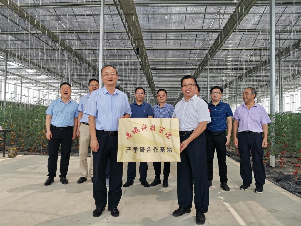 8月19日上午,考察组来到安徽华强种业有限公司,受到了萧县科技局刘纯朴副局长、萧县祖楼镇党委书记张勋、副镇长纪珺吉和公司董事长穆克利的热情接待。在座谈会上,校政企三方就项目合作、科研成果转化、校外实训基地建设、课程共建及人才培养等问题进行了深入地交流和探讨,并达成了深入合作意向。崔广荣、舒英杰分别与穆克利签订了校外实习实训基地协议和课程共建协议并授牌。
