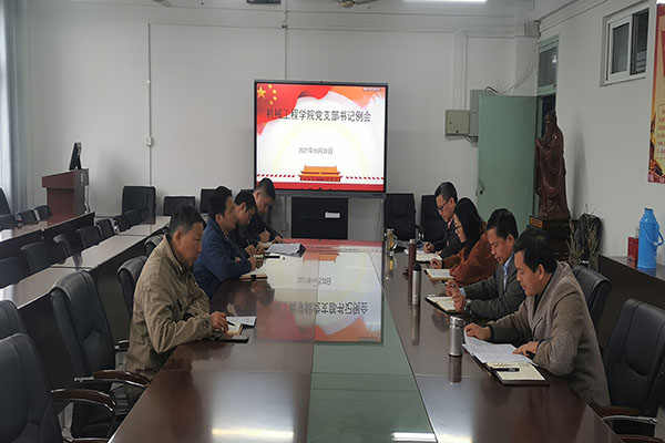 2021年10月20日下午,机械工程学院召开党支部书记工作例会,党委书记、院长陈丰,组织员张严政,党委副书记、纪委书记张程,3个教工党支部和4个学生党支部书记参加,会议由张严政主持。