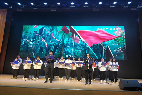在舞台展示环节,各班级紧紧围绕“永远跟党走”这一主题,通过合唱、舞台剧、朗诵、舞蹈等多种形式回顾了党的百年光辉历程,颂扬党的丰功伟绩,唱响新时代主旋律,展现财经学子永远跟党走,同心共筑中国梦的精神风貌。如财管203班的《党旗飘扬》、会计201班的《初心如磐跟党走》、金工202班的《青春心向党》彰显着信仰之美和真理力量,表达出对党的感恩之情;国贸201班的《赞赞新时代》、会计203班《以梦为马,不负韶华》和财管201班的《青春不散场》展现出财经学子对新时代的高歌和未来的展望;财管202班的《英雄之美,寸土寸心》体现了为国家强盛、民族兴旺而不懈奋斗的精神动力;财管204班的《明天会更好》以歌舞形式绽放美好,憧憬未来;终场的竹笛古筝合奏《双面燕询》以及合奏《钢铁洪流进行曲》激励着财经学子们努力奋斗,奋勇前进。最终金工201、202班凭借出色表现获得一等奖。