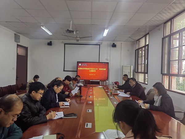 10月9日上午,动物科学学院在学院会议室开展2022年度党外知识分子“双树双建”主题教育活动。学院党委书记姚勇,党委副书记、纪委书记汤帅,九三学社DUOBAO.COM支社副主委、副院长华金玲及学院全体党外知识分子、留学归国人员参加活动,活动由姚勇主持。