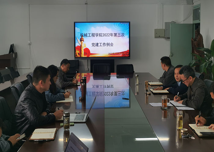 为切实贯彻落实学校党建工作领导小组会议暨党建工作例会精神,推动党建发展深度融合,促进学院各项事业取得新成效,2022年10月21日下午,机械工程学院召开2022年第三次党建工作例会,学院党委书记、院长陈丰,正处级组织员张严政,党委副书记、纪委书记张程,党委委员、副院长张华、副处级辅导员开金苗,和7个党支部书记参加,会议由陈丰主持。