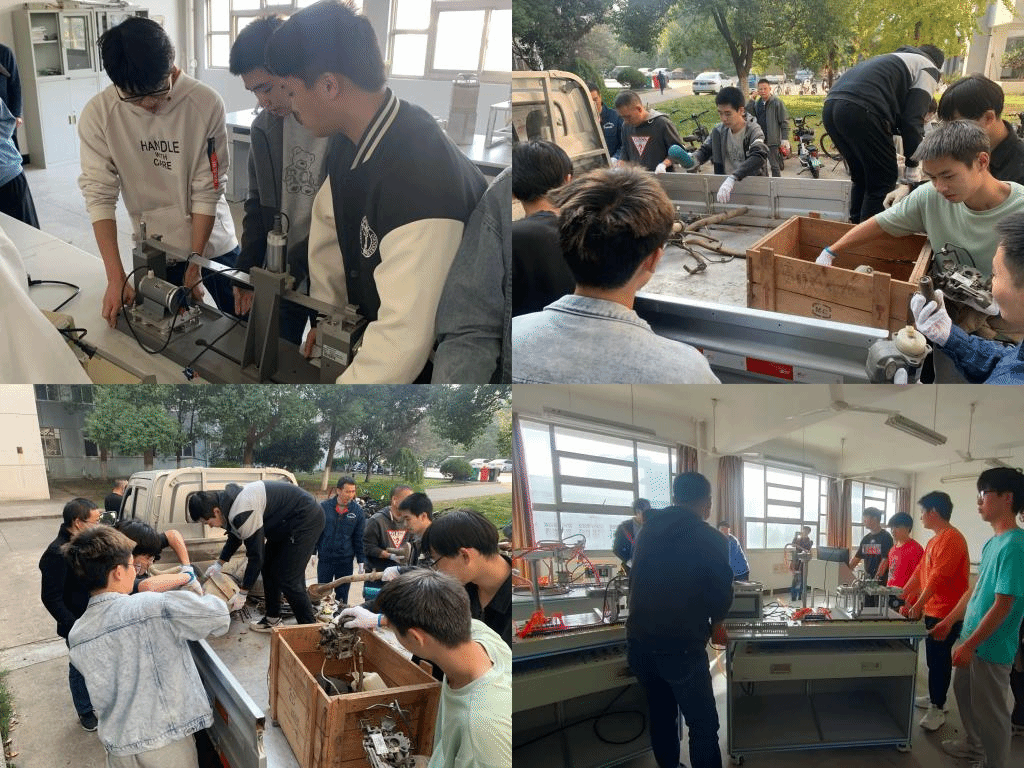 根据学院统一安排,力行楼由司志远、董文彬两位老师带队。活动开始后,师生们纷纷带上手套,男生们或拆装仪器,或你搬我抬;女生们也不甘示弱,有针对性地对实验桌椅板凳等物品做好搬运前的保护措施,劳动现场一片热火朝天。与此同时,工程训练中心更是一派热闹景象,同学们在范新波、洪腾蛟两位老师的带领下,将铁架、汽车配件、玻璃柜等物品装上卡车转运到力行楼,将故障诊断设备搬迁至工训中心一体化实训区,农机设备、铸造设备等也陆续搬到了“新家”。