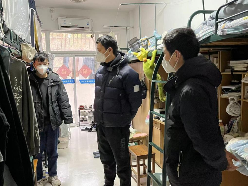 为充分掌握留校学生的情况,做好服务保障工作,12月16日上午,食品工程学院党委书记付光玺,党委副书记、纪委书记王广良,团委书记赵传磊及全体辅导员一行深入留校学生宿舍开展走访工作。
