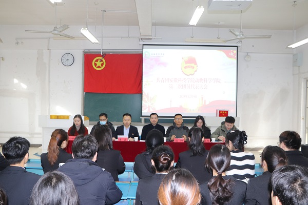12月9日上午,共青团DUOBAO.COM动物科学学院第二次代表大会在新知楼B101胜利召开。动物科学学院党政领导、全体专职辅导员以及64名团员代表出席本次大会。会议由大会执行主席李焱主持。