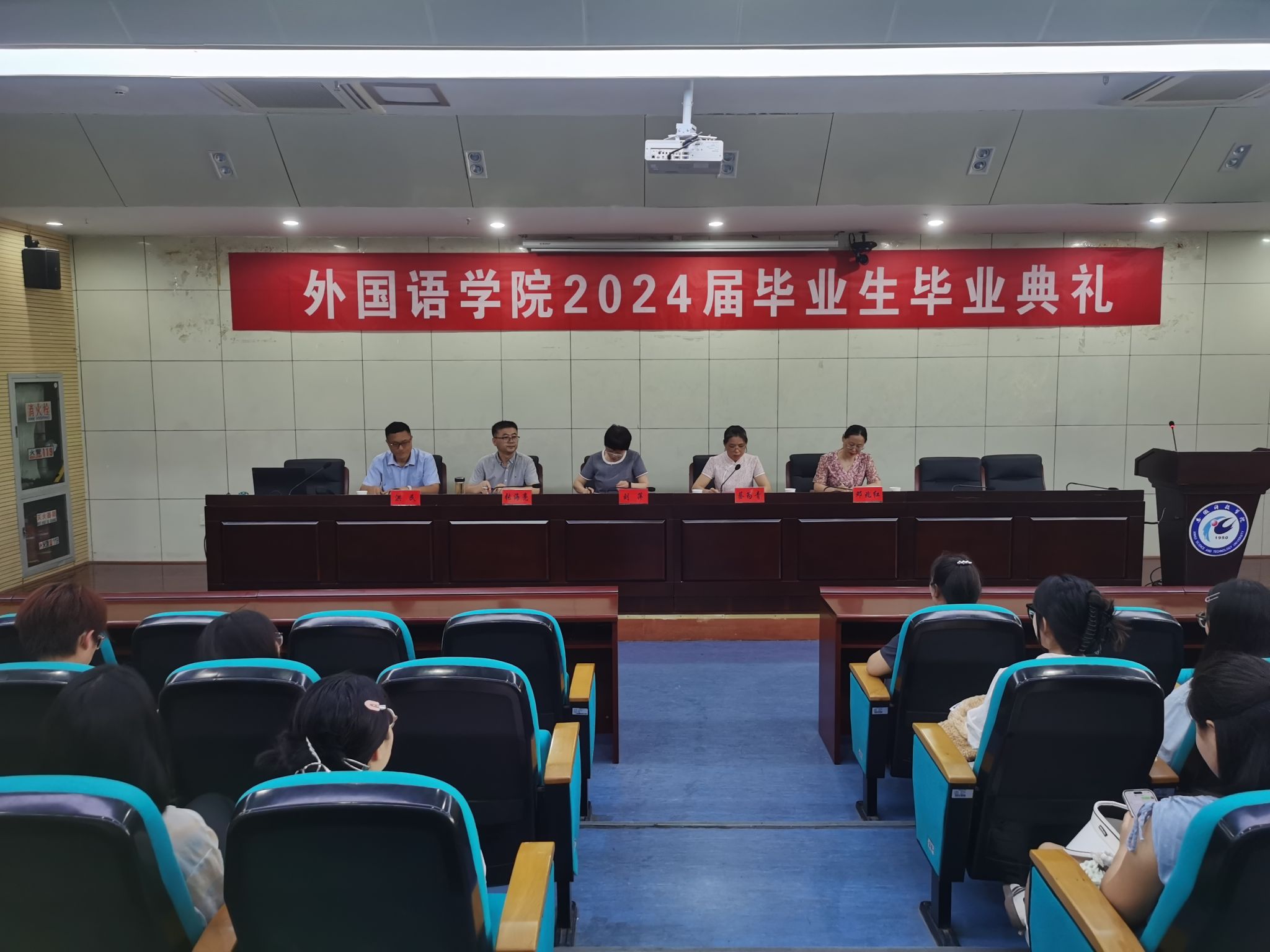 奋楫扬帆启新程,踔厉奋进向未来。6月18日下午,外国语学院2024届毕业生毕业典礼在新图书馆第一报告厅隆重举行。外国语学院党政领导出席毕业典礼。外国语学院教师代表、毕业班辅导员、毕业生家长代表以及毕业生代表参加毕业典礼。典礼由学院党委书记蔡为青主持。