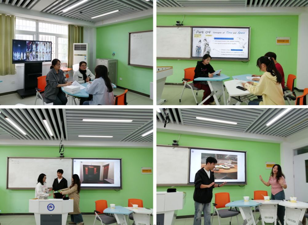 参加比赛的各个团队根据前期通知和比赛要求提前进行了案例开发和案例展演等准备工作。在比赛现场,各团队结合各自开发的商务沟通、人际交往、社交礼仪等方面的跨文化案例进行角色扮演,呈现了因文化差异所导致的文化冲突和误解,然后结合所学理论知识对文化差异现象进行了剖析并提出了相应的解决方案。表演完毕后,三位评委教师结合案例进行了提问。参赛学生前期准备充分,表演真实自然,道具使用恰当,语言表达流畅,案例分析较贴切,表现较强的跨文化敏感性和较强的跨文化交际能力。赛后,吴远青代表评委教师对各个团队的表现进行了反馈,指出各团队在展演与分析过程中的优点及需要改进的地方。