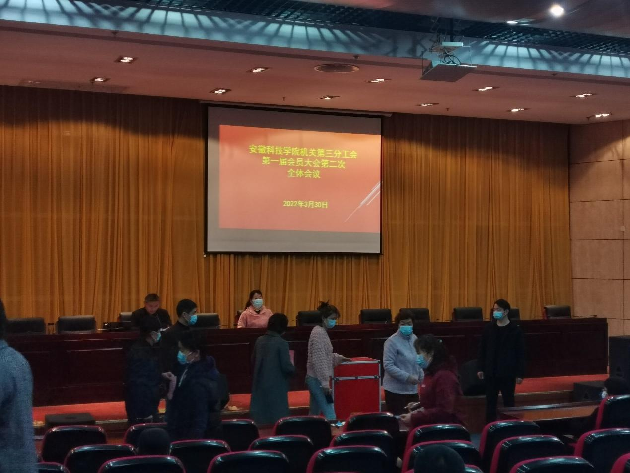 2022年3月30日上午,机关三分工会第一届会员大会第二次全体会议在凤阳校区会议中心第二报告厅召开,分工会全体会员参加大会。会议由第三分工会委员肖明松同志主持。