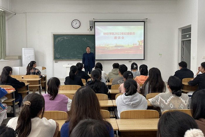 11月9日下午,财经学院在龙湖校区致知楼A106教室召开班级纪律委员座谈会。学院党委副书记、纪委书记耿广汉出席会议。学院团委组织部全体成员、各班级团支部书记、纪律委员参加会议。会议由学院纪委副书记、团委书记薛枫主持。