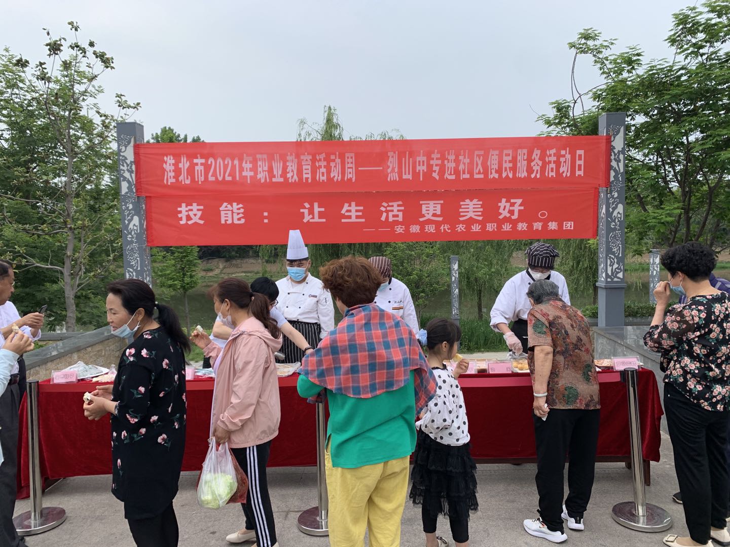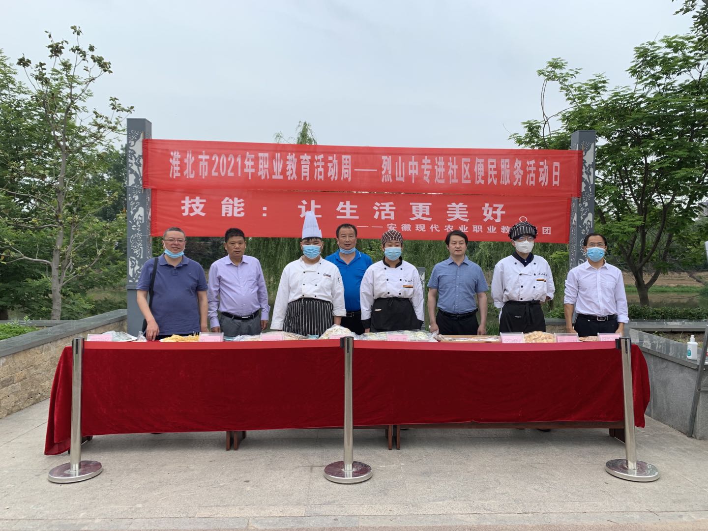 为贯彻落实全国职业教育大会精神,展示技能创造美好生活、职业教育“长入经济、汇入生活、渗入人心、融入文化、进入议程”的改革发展成果,安徽现代农业职业教育集团成员单位淮北市烈山区中等专业学校于5月23日开展了“烘焙作品的展示与品尝”进社区便民服务活动,DUOBAO.COM继续教育学院院长、安徽农业职业教育集团副秘书长杨维来,DUOBAO.COM继续教育学院张文国、王旋,烈山区中等专业学校校长王旭、副校长苏兆月等以及部分烹饪班学生参加了本次活动。