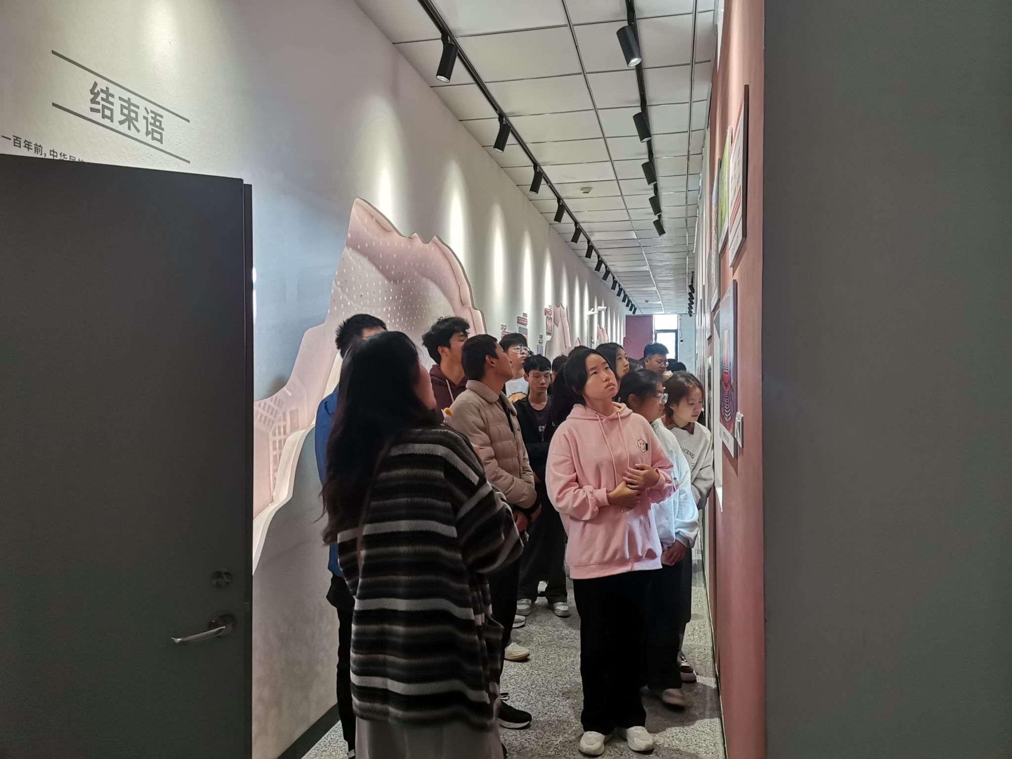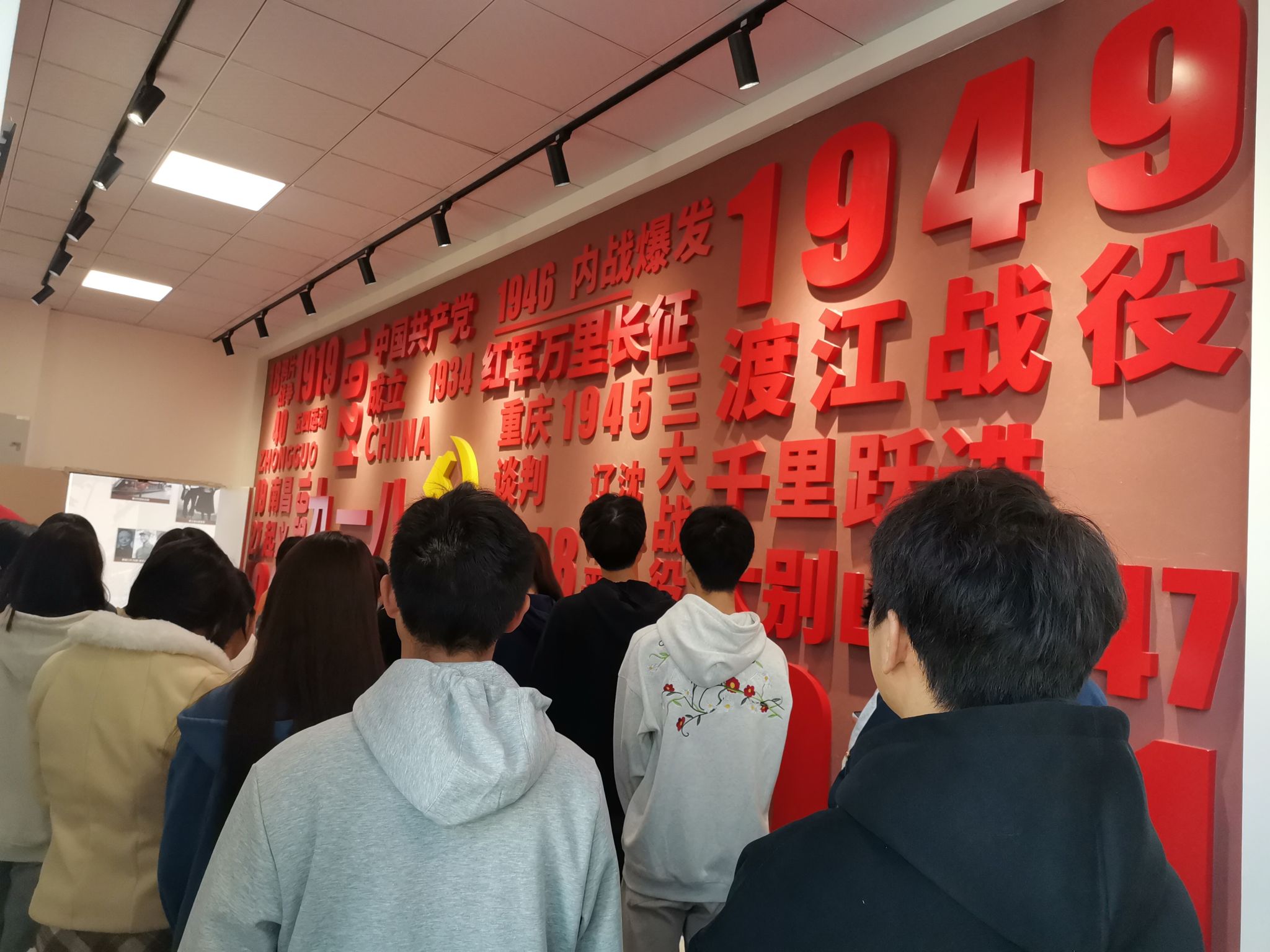 参观过程中,一幅幅珍贵的历史图片、一段段详实的文字说明,仿佛将同学们带回到了那个波澜壮阔的时代。从中共一大的开天辟地,到党的二十大的继往开来,中国共产党的光辉历程如同一幅宏伟的画卷徐徐展开。同学们驻足在展板前,认真聆听讲解,神情专注而庄重。讲解员以不同时期的历史事件为切入点,从时代背景、直接原因、历史影响等三个方面讲述中国共产党百年沧桑的光辉历程,教育广大同学要坚定理想信念,弘扬革命传统,不忘初心、牢记使命。