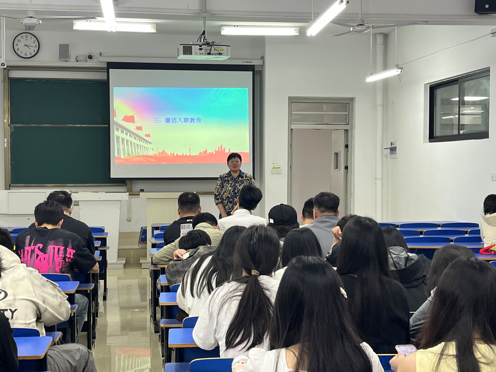5月28日下午,建筑学院举办“不忘初心 廉洁起航”毕业生廉洁入职教育,学院党委副书记谢宜勤主讲,2025届全体毕业生参加。