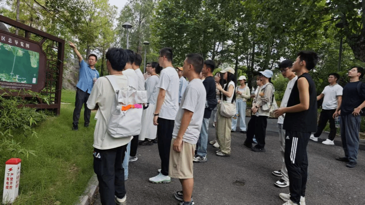 在龙子湖风景名胜区,同学们考察了滨水综合服务区、湖面风光游赏区、文化艺术体验区等板块。围绕道路绿化、山林绿化、滨水植物景观设计等视角,师生共同探讨了景区环境的植物景观营造、湖滨缓冲带构建,以及水生植物生态修复等内容,促使研究生在真实场景中学习植物搭配、文化内涵、地域特色与工程实践。