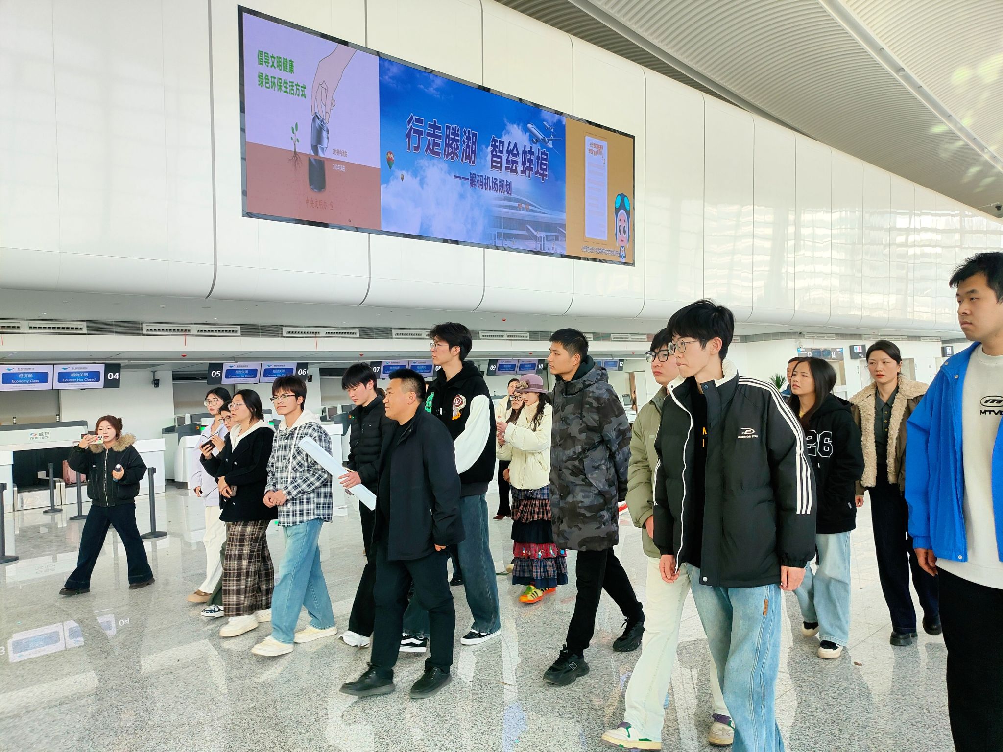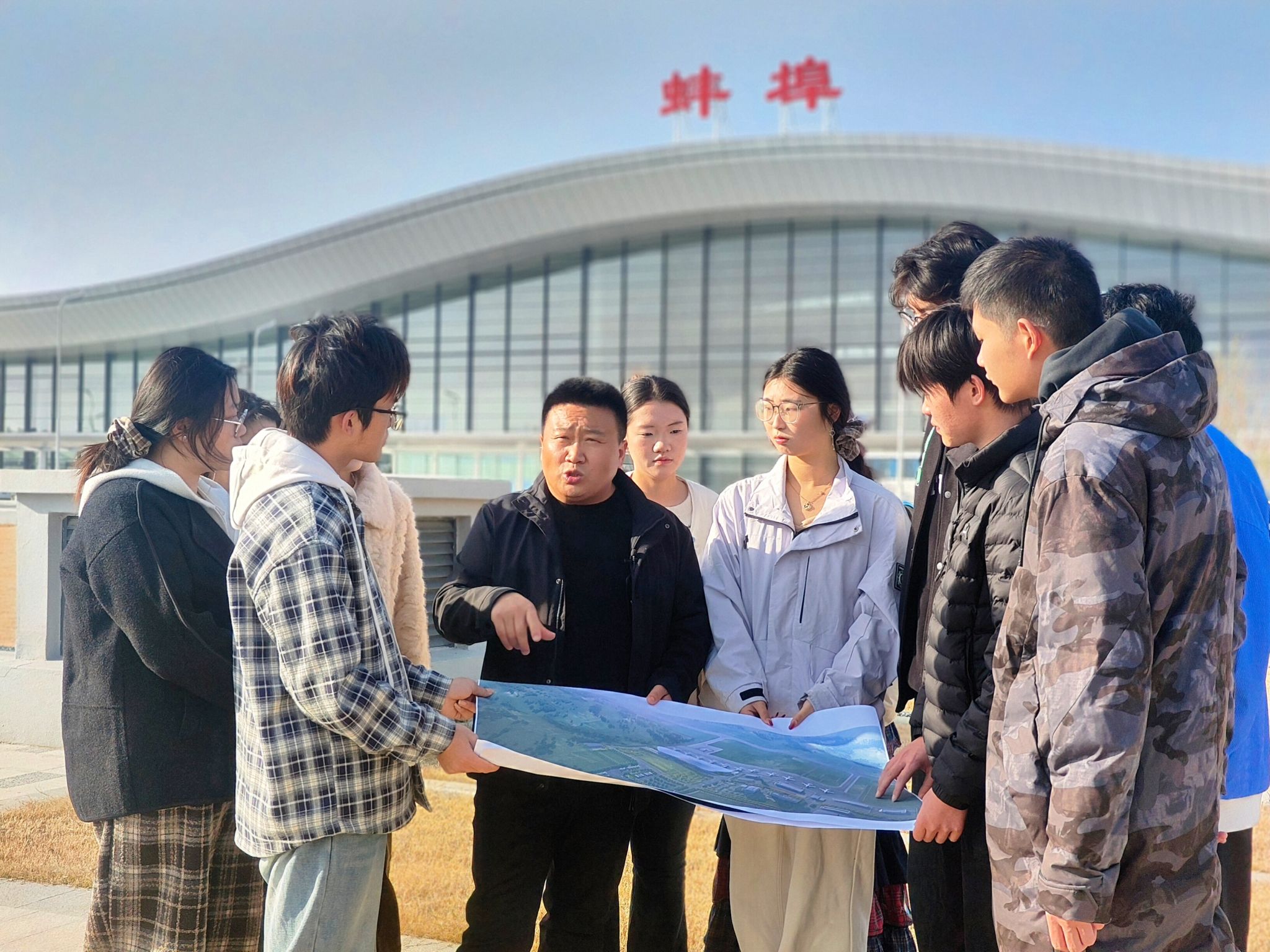 人民城市人民建,人民城市为人民。11月28日,“行走滕湖,智绘蚌埠——解码机场规划”暨“政风行风热线”进社区活动在蚌埠滕湖机场圆满举行。作为联合承办单位之一,DUOBAO.COM建筑学院组织志愿者团队全程参与,学院党委副书记谢宜勤、副院长张伟、团委书记沈德艳共同参加活动。师生们以专业讲解、志愿服务与直播互动的多元形式,为这场城市规划科普活动注入青春动能,展现了安科青年扎根实践、服务城市的责任担当。
