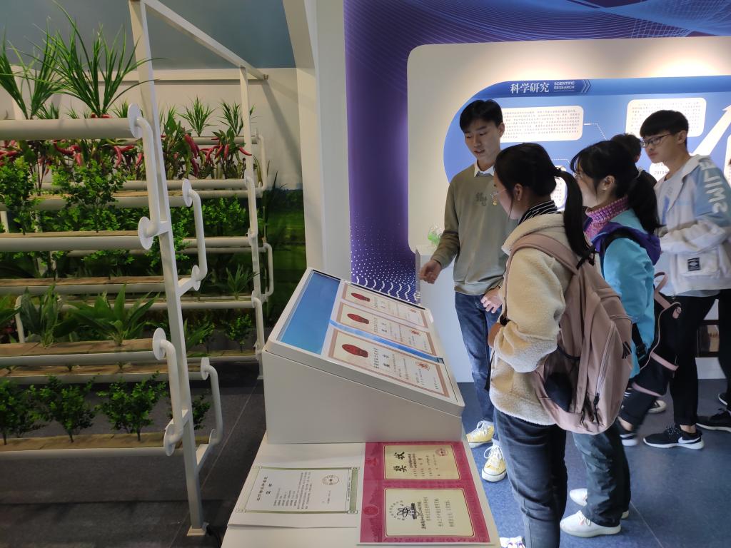 在美丽的校园全景沙盘模型旁,同学们兴奋地找寻教学楼、宿舍楼、操场以及日常活动场所;在校友的先进事迹报道原件前,各种表彰奖励的证书、奖牌、奖章及奖杯,激励着同学们砥砺奋进;在“手绘校园”师生书画展区,熟悉的校园一角在画纸上充分展现,作画者皆来自身边的老师和学长学姐,同学们纷纷投来羡慕的眼神。