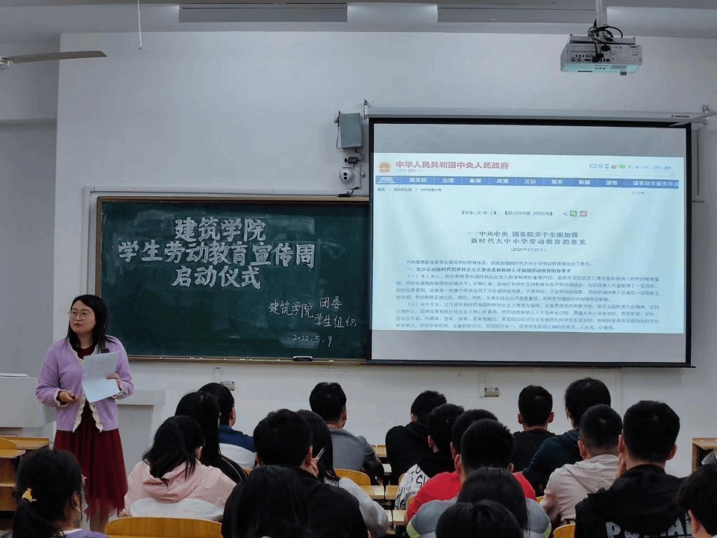 5月9日晚建筑学院在致知楼B209启动“学生劳动教育宣传周活动”,本次活动由建筑学院劳动教育负责教师吴婷婷主持,建筑学院学生会权益维护部、各班级生活委员参加。