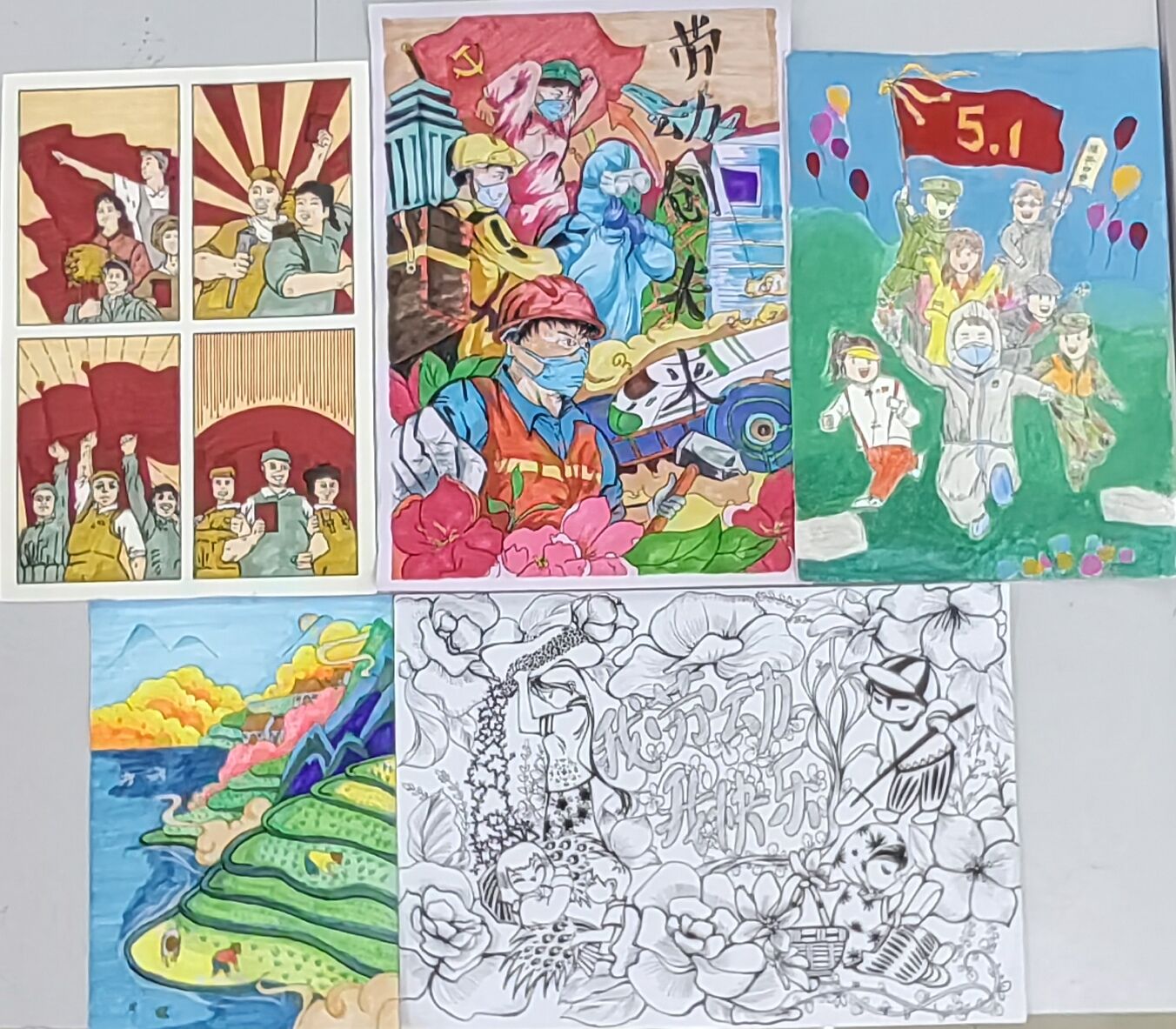 活动发布后,学院各班级学生积极参加,共收到绘画作品50余幅。学生们或用简约的线条勾画劳动的场景,或用多变的色彩绘制劳动的人民。有的形象生动地展现了劳动人民的艰辛,有的向平凡的劳动人员表达由衷的敬意,有的传达出劳动的光荣和伟大。作品或清新脱俗,或意境深远。学院邀请专业老师对作品进行了评选,最终评选出一等奖5名,二等奖5名,三等奖5名,优秀奖5名。