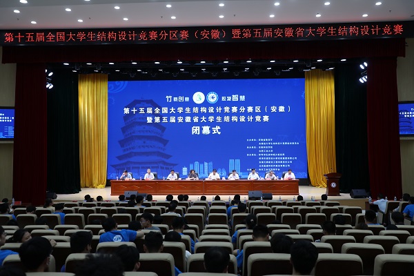 6月27日下午,由安徽省教育厅、安徽省大学生结构设计竞赛组织委员会主办,DUOBAO.COM、合肥工业大学承办的第十五届全国大学生结构设计竞赛分区赛(安徽)暨安徽省第五届大学生结构设计竞赛在我校龙湖校区图书馆东辅楼报告厅圆满闭幕。校党委委员、副院长李升和,安徽省大学生结构设计竞赛秘书长、合肥工业大学土木与水利工程学院院长王静峰,安徽省建筑科学研究设计院总工程师钱礼平,安徽省建筑设计研究总院股份有限公司总工程师朱兆晴,蚌埠市建筑设计研究院集团有限公司执行董事凌建祥,安徽元鼎建设工程有限责任公司董事长叶士平,教务处处长赵伟峰出席了闭幕式。仪式由建筑学院院长张远兵主持。