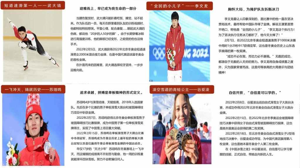 实践活动前期,实践团成员杨润天面向青年学生进行宣讲,主要介绍苏翊鸣、谷爱凌、武大靖和李文龙四位运动健儿,回顾他们的精神品质、人生历程以及在北京冬奥会上的高光时刻,同时分享“小雪花的奔赴”“父子相传——共同见证双奥之城”“细说奔走在鸟巢里的日夜与不变的坚守”等故事,让同学们了解到运动员背后的艰辛,也更加切身地感受到胸怀大局、自信开放、迎难而上、追求卓越、共创未来的北京冬奥精神。