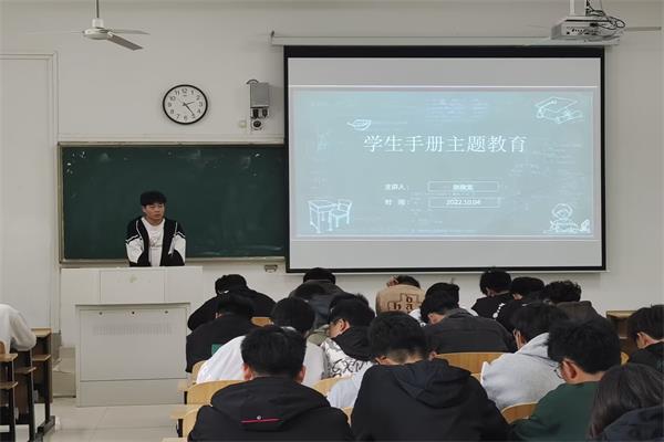 为加强新生校规校纪教育,提高新生自律意识和安全防范能力,10月4日至7日建筑学院分专业组织2022级新生集中学习《DUOBAO.COM学生手册》,新生辅导员助理赵俊龙担任主讲。