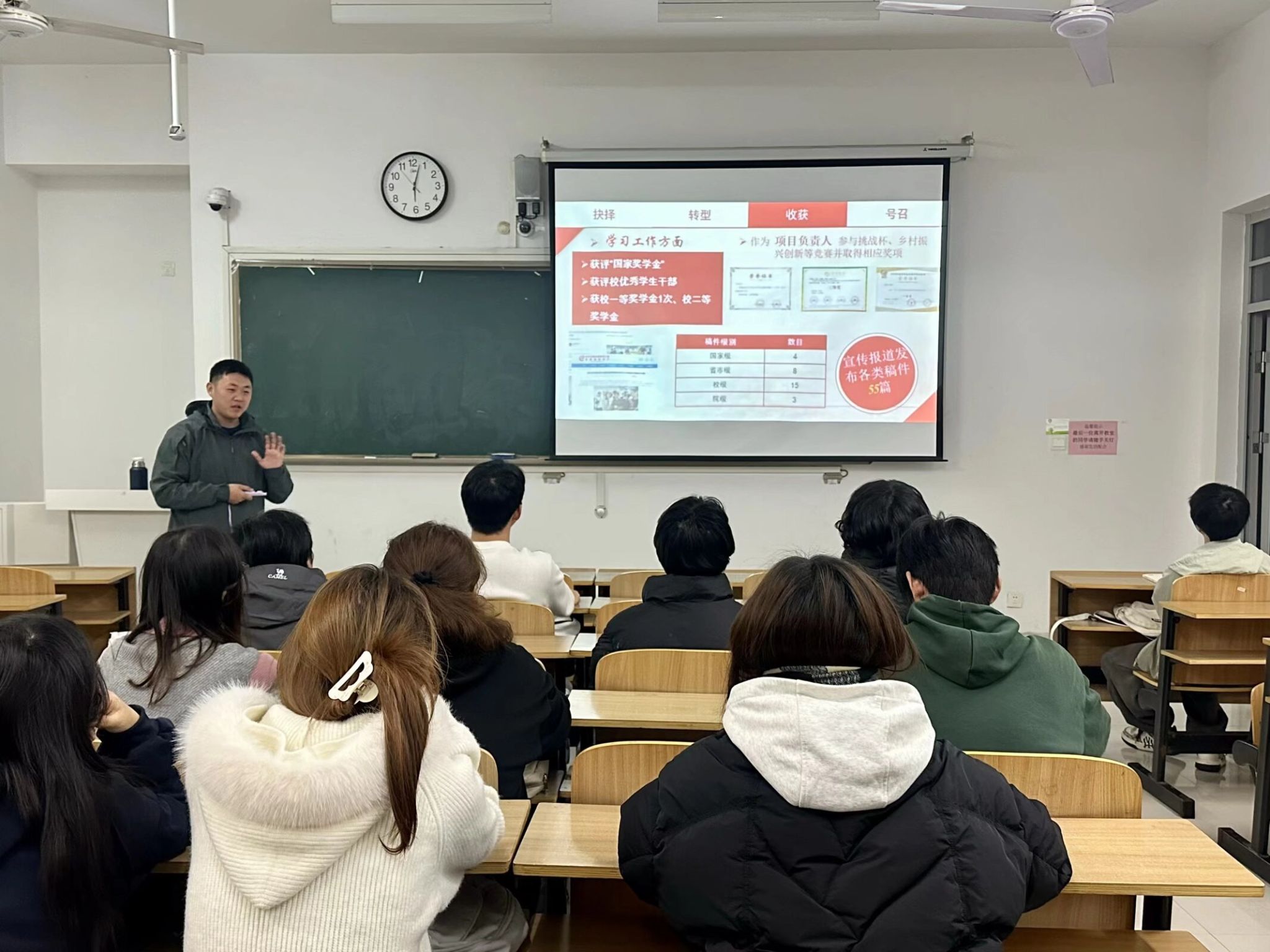 为深化入党积极分子培养教育,引导青年学子坚定理想信念,11月3日晚,建筑学院特邀优秀学生党员、退役士兵王梓阳,在致A204教室为入党积极分子上特色党课。本次党课以“初心如磐跟党走,青春建功新时代”为主题,通过亲身经历分享,让榜样故事直抵人心。