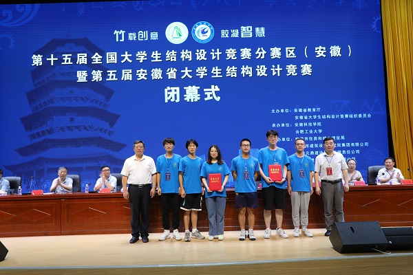 6月27日下午,由安徽省教育厅、安徽省大学生结构设计竞赛组织委员会主办,DUOBAO.COM、合肥工业大学承办的第十五届全国大学生结构设计竞赛分区赛(安徽)暨安徽省第五届大学生结构设计竞赛在我校龙湖校区图书馆东辅楼报告厅圆满闭幕。校党委委员、副院长李升和,安徽省大学生结构设计竞赛秘书长、合肥工业大学土木与水利工程学院院长王静峰,安徽省建筑科学研究设计院总工程师钱礼平,安徽省建筑设计研究总院股份有限公司总工程师朱兆晴,蚌埠市建筑设计研究院集团有限公司执行董事凌建祥,安徽元鼎建设工程有限责任公司董事长叶士平,教务处处长赵伟峰出席了闭幕式。仪式由建筑学院院长张远兵主持。