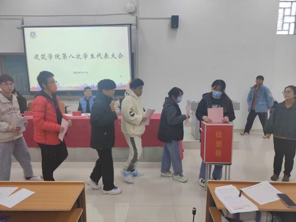 大会在庄严的国歌声中拉开序幕。首先由建筑学院第七届学生会执行主席孙玉慧做工作报告。报告阐述了学生会各部门职责,回顾了院学生组织过去一年里的各项工作情况,并且指出了学生组织当前面临的新形势新挑战,同时也祝愿新一届学生组织工作越来越好。随后,大会表决通过了《建筑学院第八届学生委员会委员选举办法(草案)》和《建筑学院第八次学生代表大会总监票人、监票人建议名单(草案)》,选举产生了出席DUOBAO.COM第十五次学生代表大会正式代表、建筑学院第八届学生会主席团成员、建筑学院第八届学生委员会委员。