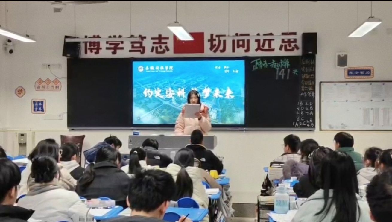 1月18日,种子科学与工程234班姚彧实践团队以“回首高中,展望未来”为主题进行宣讲。团队从我校历史、师资力量、校园文化、科研力量、人文内涵等方面全方位地向合肥一六八学子进行宣传。“问君此去几时还,来时莫徘徊”,团队勉励高三学子,一定要拼搏努力,向着梦想出发。最后,团队成员与高中班主任及任课老师深入交流并合影留念。