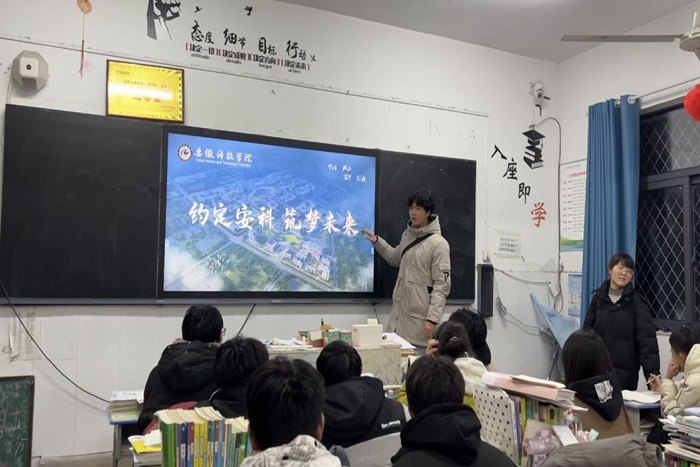 团队成员来到高三班级开展宣讲活动,围绕多宝(中国)、学科建设、校园生活以及学校未来发展四个部分对安科办学历程和发展规划进行概述性地介绍。接着,团队成员利用PPT从安科的历史底蕴、发展前景、学科专业、条件保障以及人才培养等五个方面进行全面讲解,让同学们进一步了解安科。随后,团队成员展示了安科各专业录取的最高分和最低分,让同学们可以更好的结合自身去制定自己的目标。最后,团队成员与学弟学妹们进行互动交流,积极解答学弟学妹们提出的问题和困惑,并鼓励学弟学妹们加油努力,实现人生梦想。