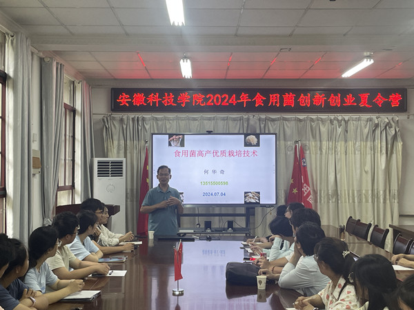 何华奇介绍了夏令营活动安排。以“食用菌高产优质栽培技术”为题,从食用菌的种类、食用菌的形态结构、食用菌生长发育所需要的环境条件、食用菌的菌种等四个方面详细介绍了食用菌的种植技术和过程。
