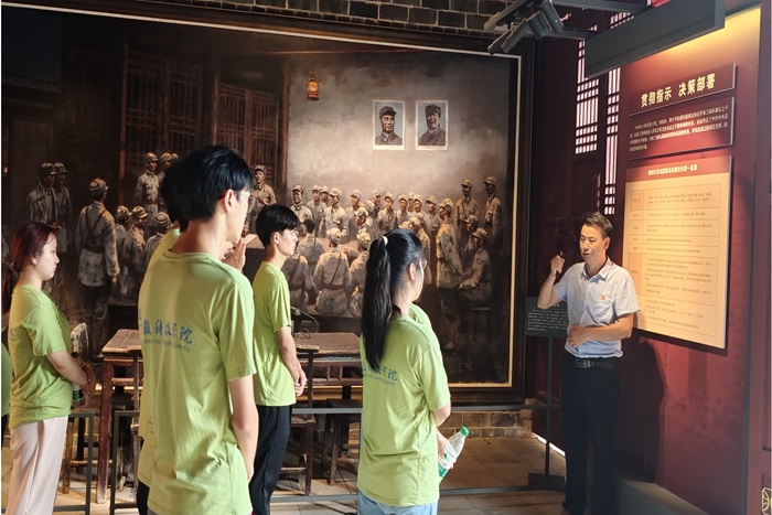 8月6日,实践团队成员来到刘邓大军刘家畈会议旧址,聆听讲解员讲解“千里跃进大别山”的故事,从革命先辈的英勇事迹中汲取力量,深刻感悟“坚守信念、胸怀全局、团结奋进、勇当前锋”的大别山精神,团队成员更加坚定了听党话、跟党走的信念,不忘初心、牢记使命,传承红色革命文化,赓续大别山红色精神。